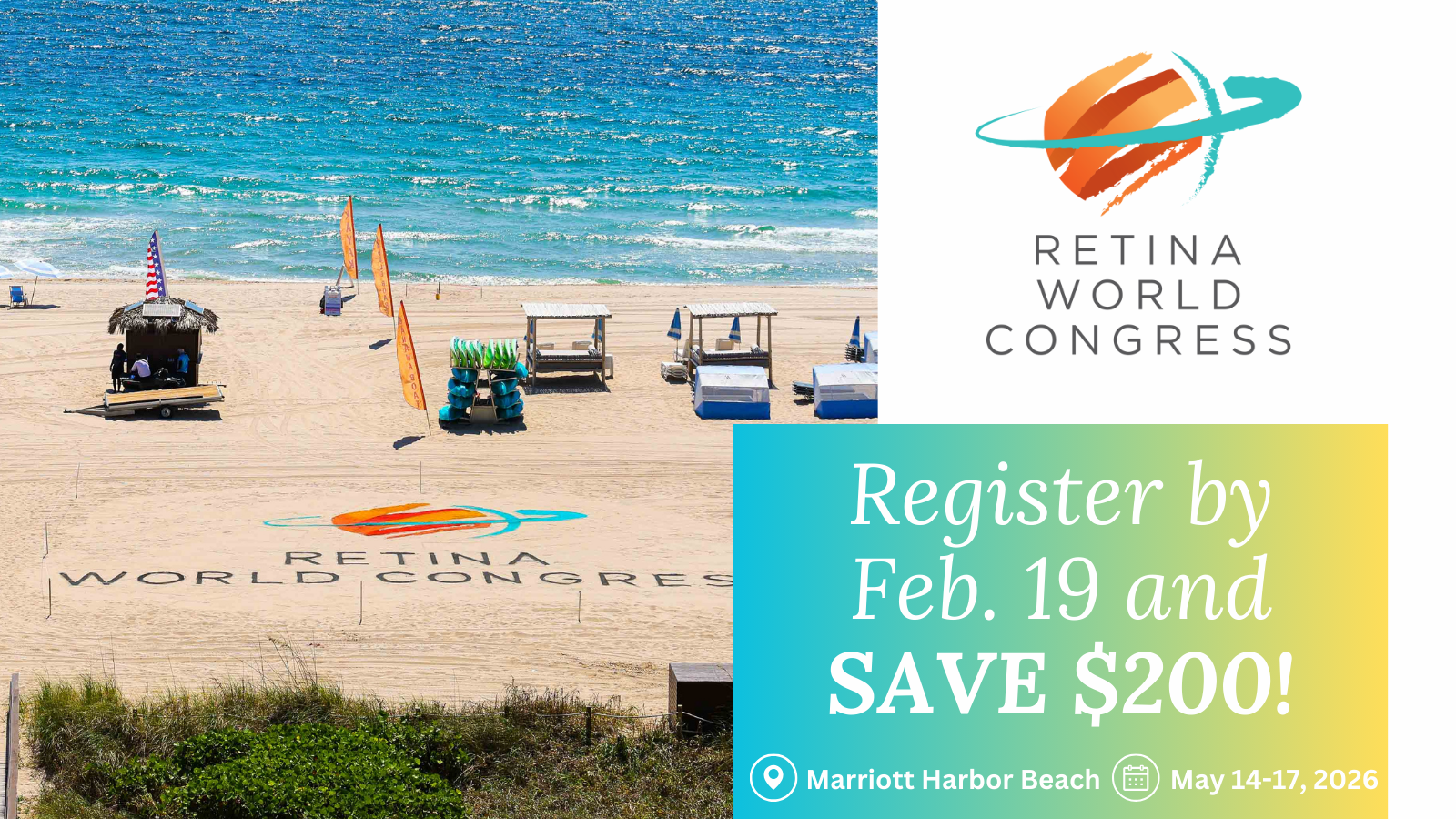 Dedicated to uniting international professionals to foster dialogue and to generate consensus about retinal diseases, emerging technologies and treatments, best practices and clinical research, Retina World Congress invites you to join us again in Fort Lauderdale, Florida, USA beginning Thursday, May 14 through Sunday, May 17, 2026.